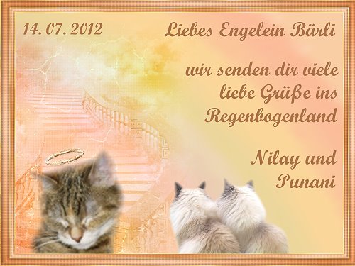 ewiger Liebevoller Erinnerung,für immer in Unserem Fellherzchen! *Knuddelnasis* BÄRLI 14.Juli Von Nilay & Punani!