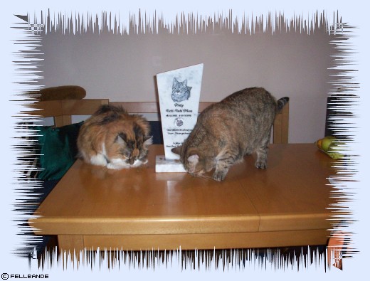 Am 9.Oktober 2008 haben wir Unsern RB-Fellis Bärchen&Puppi Ihr Fellbande Schild angebracht-*Knuddelnasisherrlidosi*,einen Katzistecker mitgebracht und Fellgranni hat Unseren Fellbabys einen Porzellankürbis in Euer Naschschüsselchen gegeben!