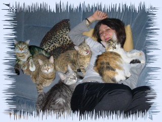 Wurfjahr: Juli 1970 Fellzeichen Krebs!*Schnurr*-Seit 25.Felljahren Fellbandes Leibeigene Dosenöffnerin,Kratzbaum und Kuschelanlaufstelle!-Sie hat uns alle fünf gerettet,und liebt uns dementsprechend zu Tode*frechschnurr*-Wir sind eindeutig Dosi's Fellbabys!-Seit dem Jahre 1987 haben wir bei Ihr ein Felliges Katzenhollywood!-Sie füttert uns,schaut das wir immer frische saubere Kistchen haben,bürstet uns,schmust ganz viel mit uns,bringt Spielzeug mit,spielt mit uns,schaut das wir alle immer regelmäßig untersucht und geimpft werden,paßt wie eine "Haftelmacherin"-auf uns auf*frechschnurr*macht einfach alles für Uns!-Wir haben Sie so Fellig Lieb!-Seit 28.Jahren sind Sie und Unser Herrlidosi zusammen,und haben sich auch schon die Pfötchen gegeben!-Natürlich ist Unsere Dosi auch etwas verrückt-eindeutig Katzenverrückt,und das Lieben wir so an Ihr!*KNUDDELNASIS*